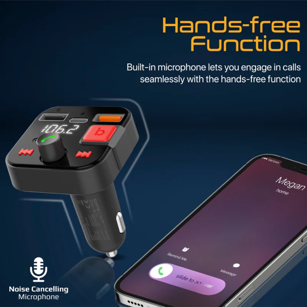 السيارة. قم بالدفق لاسلكيًا أو قم بتوصيل محرك أقراص فلاش USB بجهاز إرسال FM. مع منفذ Quick Charge 3.0 ومنفذ شحن USB-C ، سيبقي PowerTune-30W أجهزتك مشحونة وجاهزة للطريق.