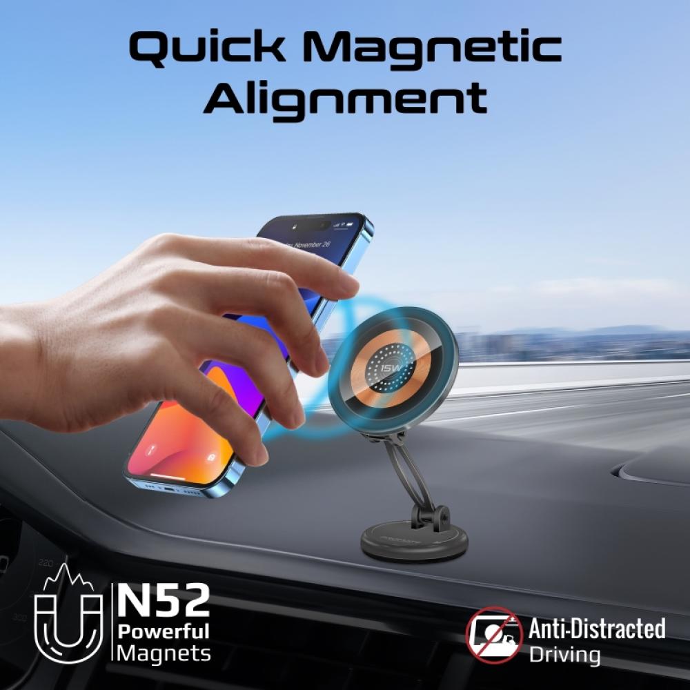 تثبيت مغناطيسي قوي للقيادة المضادة للتشتيت: تجنب التشتت والقلق بفضل تصميم Magnus2-Qi القوي والمثبت بالمغناطيس، حيث يمنع سقوط هاتفك أثناء القيادة. بفضل المغناطيسات المتينة المدمجة في الحامل، يمكنك تثبيت هاتفك iPhone 15 بثبات وأمان، مما يضمن رحلة خالية من التشتت والاهتزازات.
